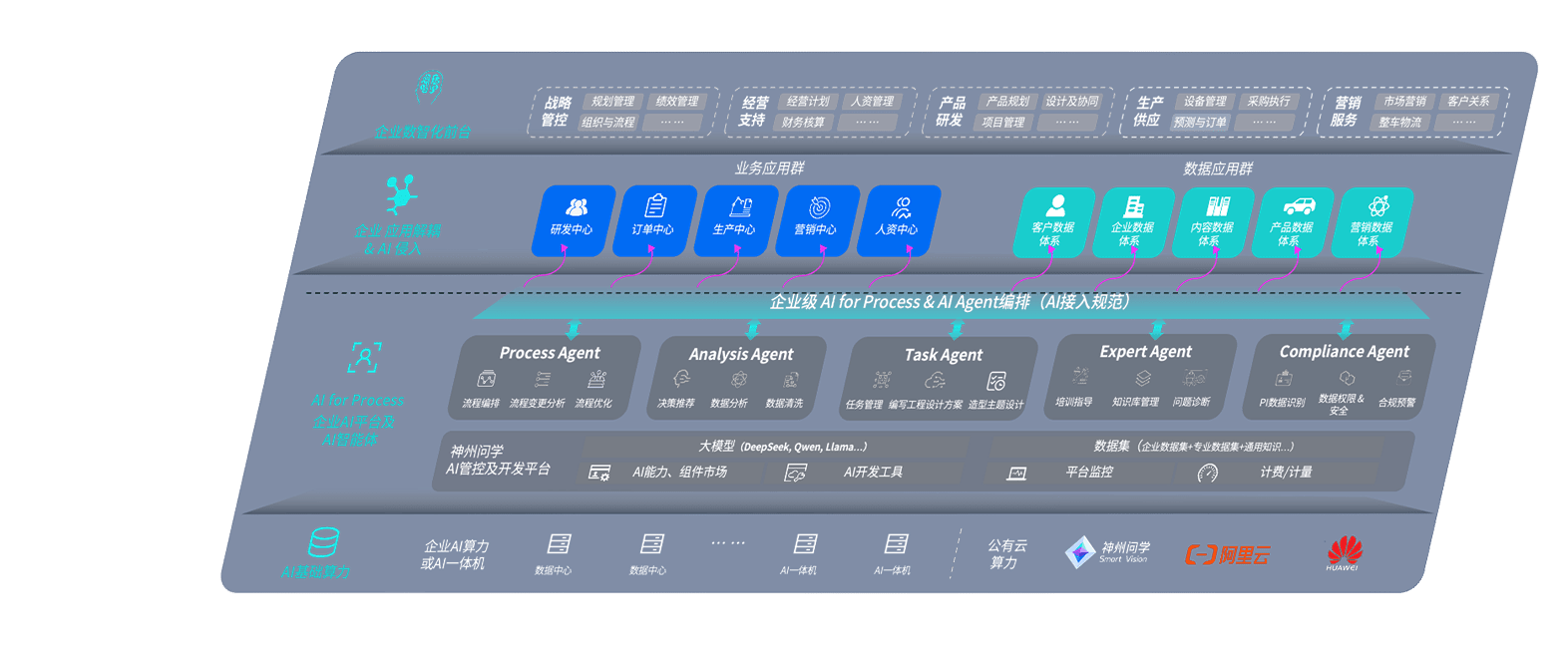 端到端的一站式AI工作空间深度融合了从企业战略规划到日常经营的全流程业务板块,,定向解决车企内部领域多、、、、部门多、、、链条长、、场景碎片化等难题,,,支持车企快速构建以AI为核心的生产力写作体系,,,实现任务执行与AI能力的无缝集成与交互